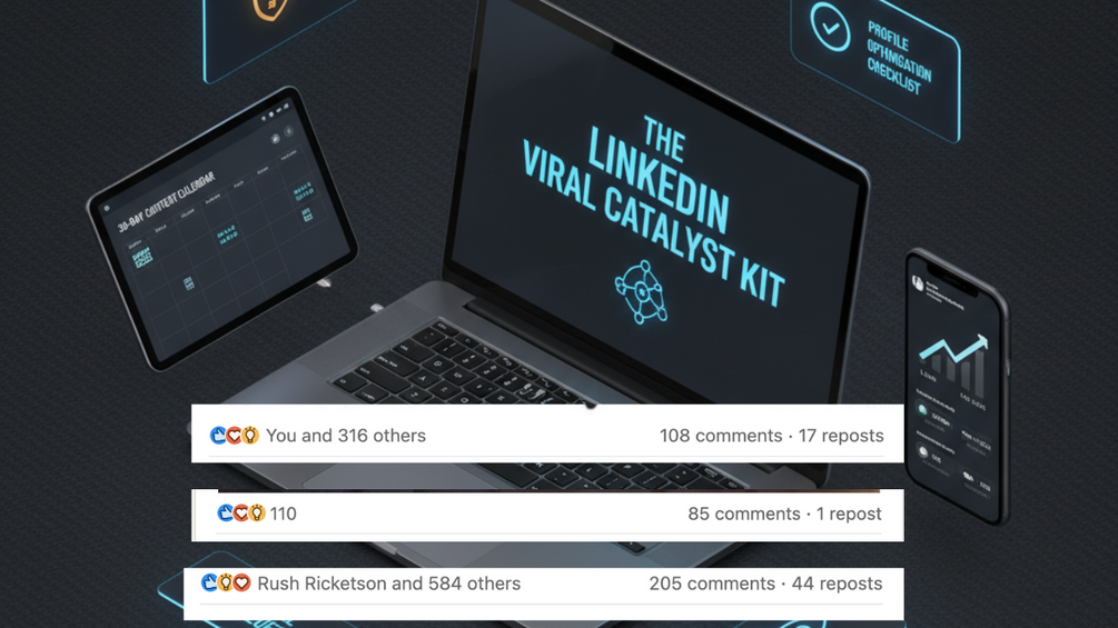 I've packaged the exact playbook used to generate millions of impressions and thousands of inbound leads for myself and my clients. It's called The LinkedIn Viral Catalyst Kit.